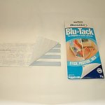 The aforementioned school had another renovation project occur during which a lot of the art was removed from the walls so as not to damage it. Upon completion of the project, the art was re-hung by persons unknown along with the hanging of several new canvases. They were constantly crooked as the students create quite a rumble going down the hallways. The ones that I hung with the adhesive tack that had remained on the wall were still level. After adjusting the new canvases a few times while my daughter rolled her eyes, I finally just went across the street to the local hardware store and got myself some more of that magical blue gummy tack and affixed it to the back of all of the new canvases and pictures.